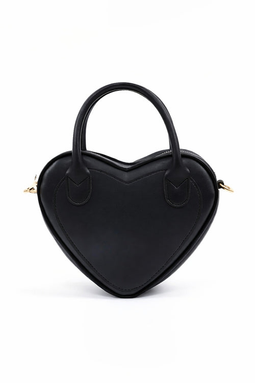 Black Heart Shaped Faux Leather Zipper Bag Single Compartment Hand Arm And Shoulder Bag