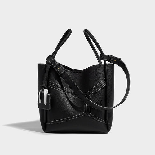Crossbody Wide Shoulder Strap Portable Bucket Bag -